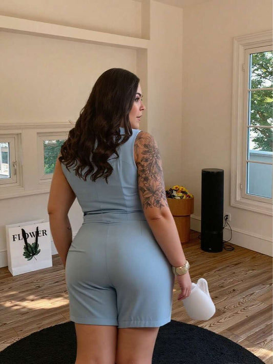 WUUW Conjunto Feminino Plus Size com Colete e Shorts – Estilo Casual Elegante